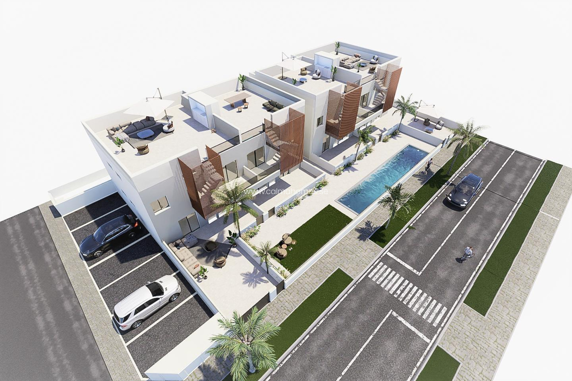 Complejo de 8 bungalows en Pilar de la Horadada, de 2 dormitorios y 2 baños desde 67,57 m2, con solárium desde 62,68 m2 con cocina de verano en planta superior. Terraza desde 6,06 m2. Piscina pública. La cocina está totalmente amueblada y equipada con electrodomésticos. Baños totalmente equipados. Preinstalación de aire acondicionado por conductos. Plaza de aparcamiento. Las llaves estarán listas en marzo de 2025. Más información detallada por teléfono WhatsApp +34 664 25 63 71