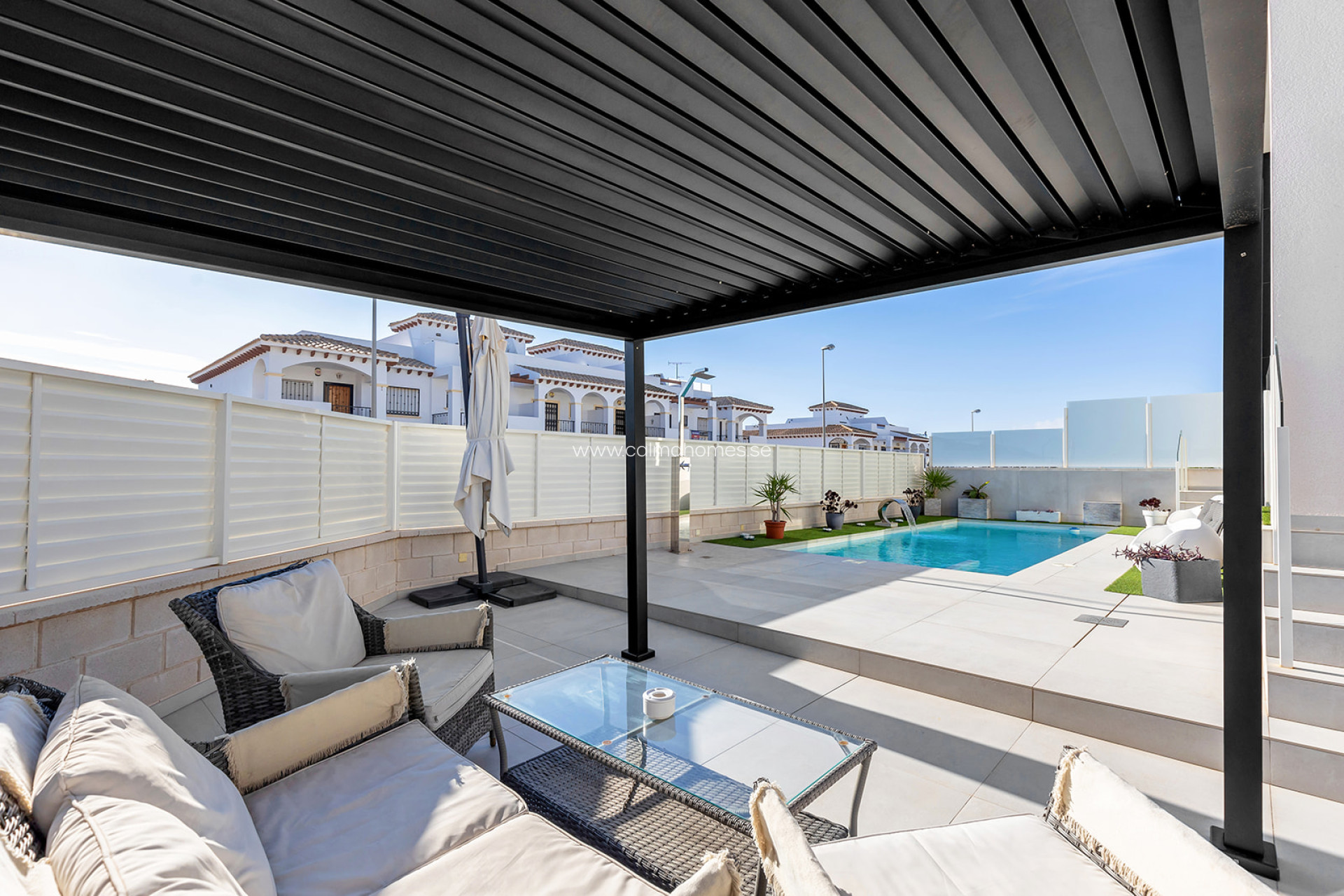 Moderna villa en Los Altos, Orihuela Costa. Moderna villa con piscina privada y parcela de 267m2. Esta casa se hizo con un proyecto personalizado y se puede ampliar a 3 y 4 dormitorios. La villa de recién construcción y ofrece muchos extras y materiales de alta calidad. La vivienda se divide en 3 plantas, en planta baja encontramos salón-comedor, cocina americana y un baño. En planta alta, encontraremos 2 dormitorios 2 baños, uno de los dormitorios tiene salida a una amplia terraza con vistas a la ciudad y otro tiene un baño en-suite. También cuenta con un amplio solárium de 68m2. La vivienda está a sólo unos minutos en coche del centro de Torrevieja. Está situado en una zona residencial donde se disfruta del clima mediterráneo y las playas de bandera azul de Orihuela Costa y Torrevieja como La Mata, Playa Flamenca, La Zenia, Cabo Roig, Cala Capitán y Campoamor. Se encuentra cerca de los centros comerciales Habaneras y La Zenia Boulevard, donde se pueden encontrar muchas tiendas y restaurantes. También puede disfrutar de una gran variedad de campos de golf en los alrededores, como Villamartín, Las Ramblas, Campoamor y Las Colinas, así como centros deportivos y puertos marítimos. A través de la N-332 o la autopista AP-7, se puede llegar fácilmente a cualquier punto de la Costa Blanca.