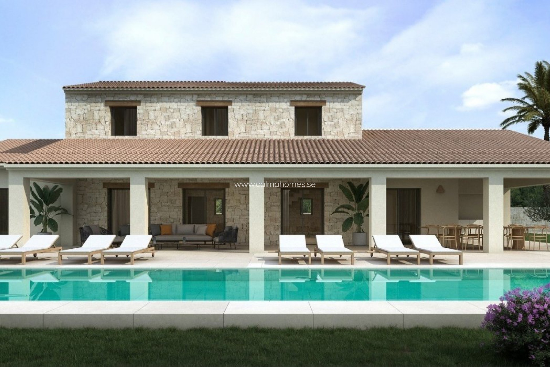 NEW BUILD VILLA IN MORAIRA WITH THE SEA VIEWS New Build villa in Moraira with private pool and sea views. On the ground floor we find a large living-dining area and open plan kitchen, master bedroom with walking wardrobe and bathroom, front terrace with access to the pool. On the first floor is 3 bedrooms with fitted wardrobes, 3 bathrooms en suite. As well here you have basement of 81m2 with wine celler. Villa will be build using high quality materials. The kitchen will be chosen by the client, kitchen cabinets, worktop and appliances. Air conditioning with climate control system (condense) in the living rooms and bedrooms. Mitsubishi brand. The swimming pool will be built with an outdoor shower (hot/cold water connection). Automatic entrance gate for the cars with remote control and automatic pedestrian door. Garden to be chosen by the client. Moraira is a small town with with good restaurants, bars and plenty of supermarkets around. There is a very pleasant beach right next to town that is great for families. The seafront offers tremendous views of Penon Ifach across the bay in Calpe. The coast road getting there is well worth doing with some spectacular views. Moraira situated about 1 hour 15 minutes North up the A7 from Alicante airport its fairly easy to get to. It's about the same distance or a little less South from Valencia airport.
