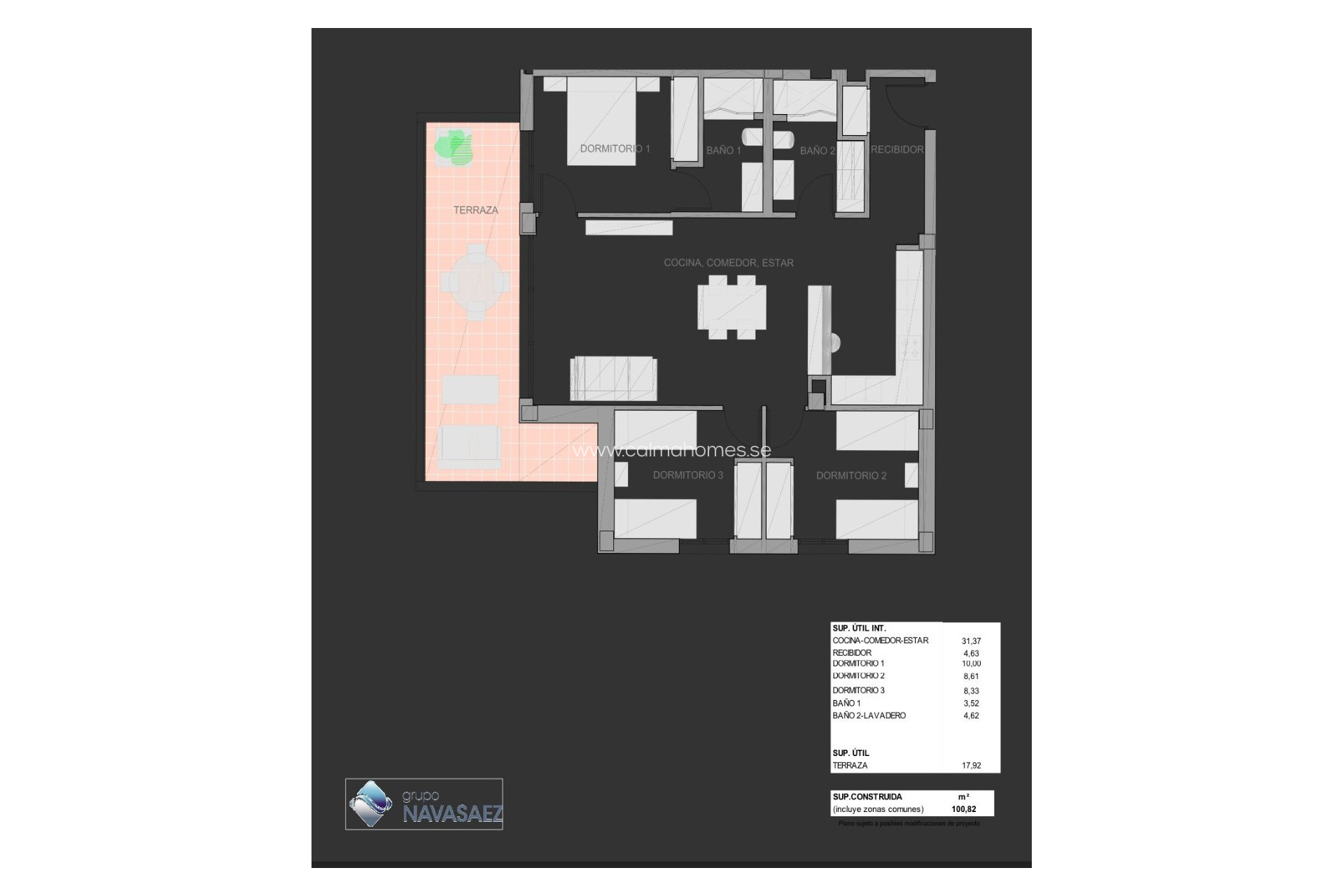 The complex consists of 175 homes with 3 bedrooms and 2 bathrooms, all featuring spacious terraces. It also includes 36 exclusive penthouses with private solariums and jacuzzis.