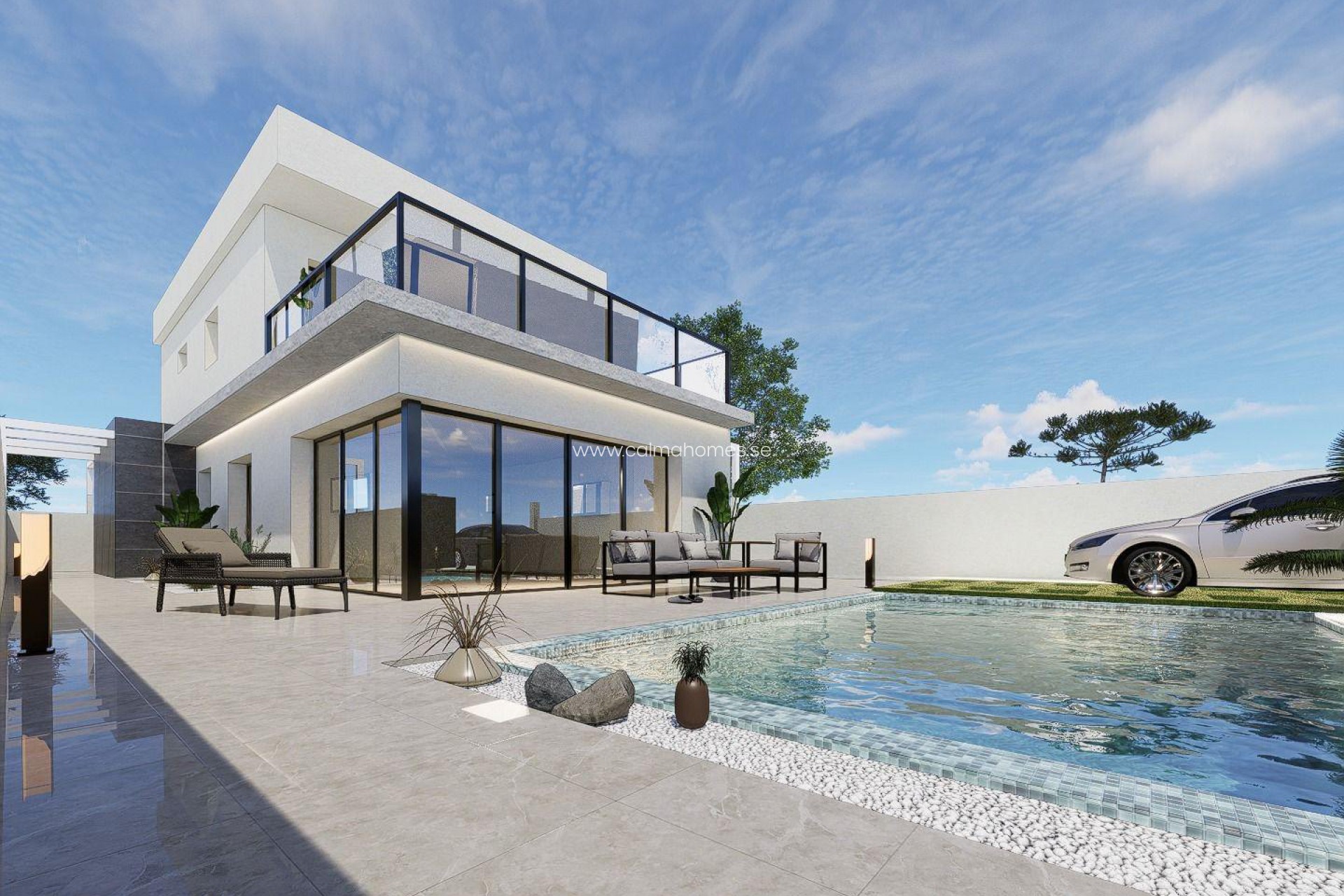 VILLA DE OBRA NUEVA EN PILAR DE LA HORADADA Villa de obra nueva en Pilar de la Horadada. Moderna villa construida en 2 plantas, dispone de 3 dormitorios, 2 baños, cocina americana con el salón, terraza, jardín con piscina privada y plaza de aparcamiento. Pilar de la Horadada es un típico pueblo español en la parte más meridional de la Costa Blanca. La gran calle principal tiene supermercados, muchas tiendas, restaurantes y bares y algunas plazas encantadoras. Las hermosas playas de Torre de la Horadada y Mil Palmeras con paseo marítimo de arena fina está a sólo 5 minutos. Los aeropuertos de Corvera (Murcia) y Alicante están respectivamente a 40 y 55 minutos.