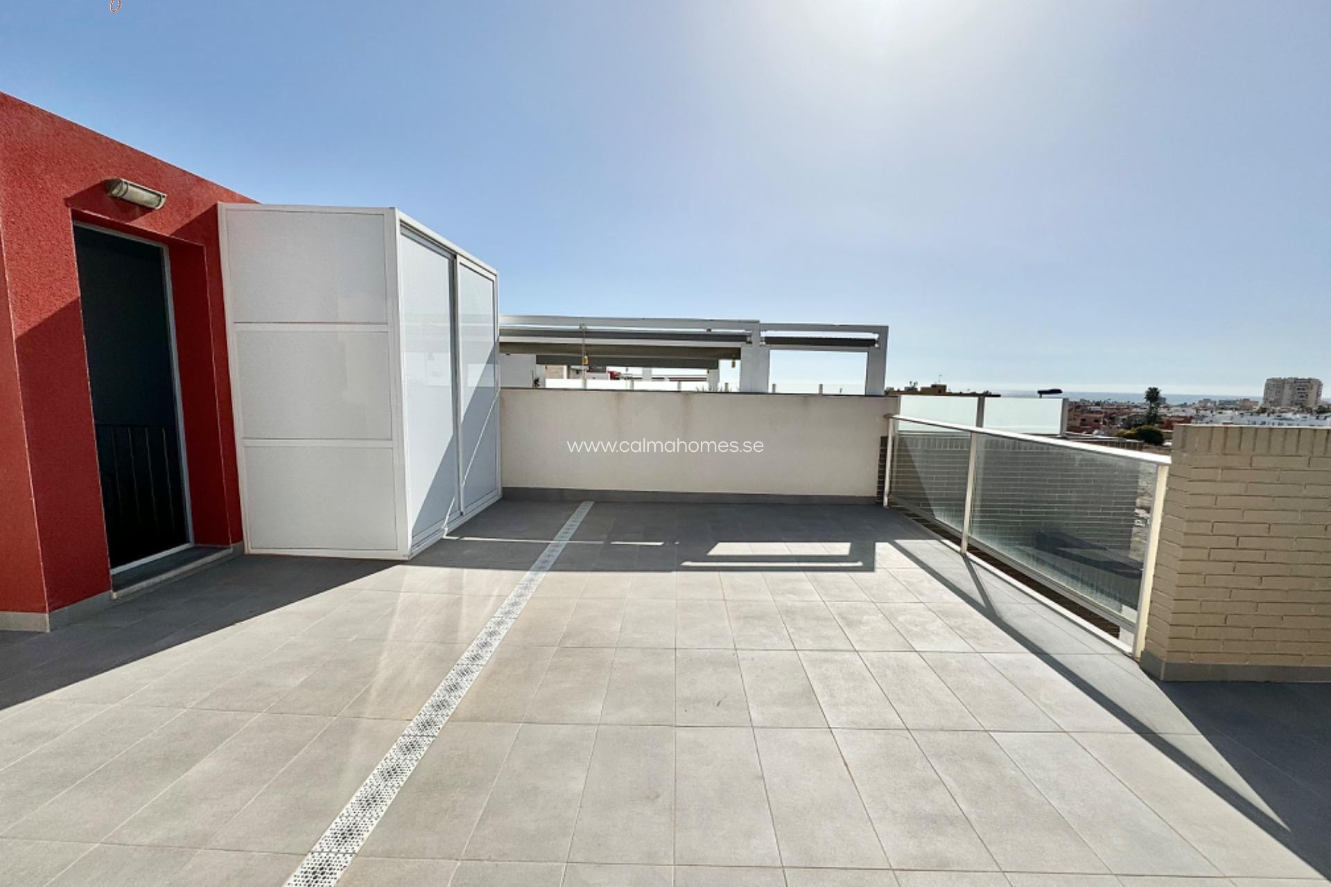 1. Piso → Ático en Torrevieja zona Aguas nuevas 1, 80 m. de superficie, 750 m. de la playa, 2 habitaciones dobles, 2 baños, propiedad seminueva, cocina equipada, carpinteria interior de lacado blanco, orientación sur, suelo de cerámico, carpinteria exterior de aluminio / climalit. Extras: agua, aire acondicionado, armarios empotrados, balcón, barbacoa, jardín, luminoso, luz, muebles, piscina comunitaria, solárium, techos altos, terraza, vivienda adaptada, autobuses, árboles, céntrico, centros comerciales, centros médicos, colegios, costa, parques, supermercados, urbanización, vistas al mar, vistas despejadas, zonas infantiles, garaje incluido, parking incluido