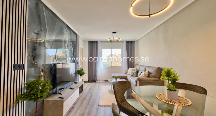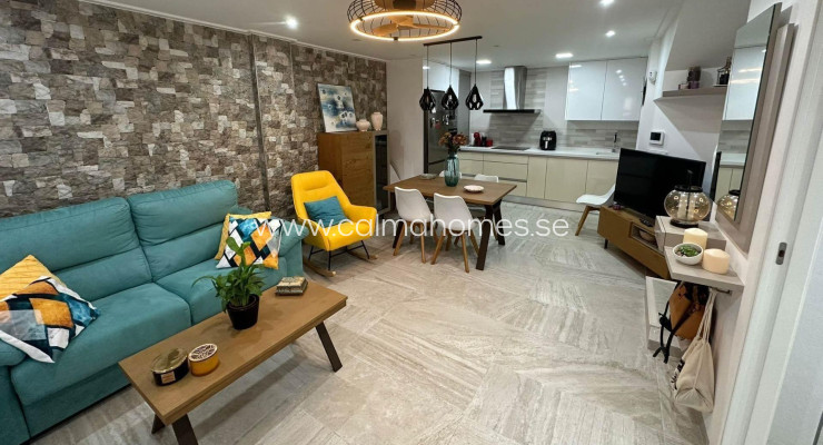 Con una superficie construida de 102 m², esta propiedad combina confort y funcionalidad, convirtiéndose en la elección perfecta para familias o como residencia vacacional de ensueño. Imagina disfrutar del clima mediterráneo en tu soleado solárium privado de 10 m², un espacio ideal para relajarte y disfrutar de la vida al aire libre. Situado a solo 2 kilómetros (6 minutos en coche) de las impresionantes playas de la Costa Blanca, este tríplex ofrece una amplia habitación doble con armario empotrado, además de dos habitaciones sencillas que se abren a un encantador balcón. La luminosidad inunda cada rincón gracias a su diseño abierto, creando un ambiente acogedor y elegante. Los baños incluyen, uno completo en la planta principal y un aseo adicional, pensados para tu comodidad. A pesar de ser una propiedad original, cuenta con detalles de calidad, como la carpintería interior de pino robusto y suelos de cerámica gres que aportan un toque de sofisticación. Los exteriores de aluminio garantizan durabilidad frente a cualquier condición climática. Entre las características que hacen de esta propiedad una oportunidad única, se incluyen aire acondicionado para un confort óptimo, un jardín comunitario decorado con árboles naturales, y un garaje asignado que facilita el aparcamiento. Además, podrás disfrutar de una piscina común, el lugar perfecto para relajarte bajo el cálido sol mediterráneo y crear recuerdos inolvidables con amigos y familiares. Ubicado estratégicamente cerca de centros comerciales, centros médicos, colegios y supermercados, tendrás acceso rápido a todos los servicios necesarios para tu día a día. Esta es una oportunidad excepcional para adquirir un hogar que combina calidad de vida, seguridad y el estilo de vida mediterráneo en la maravillosa Costa Blanca.
