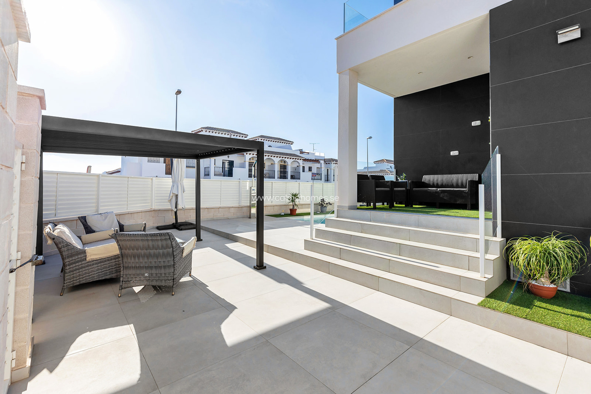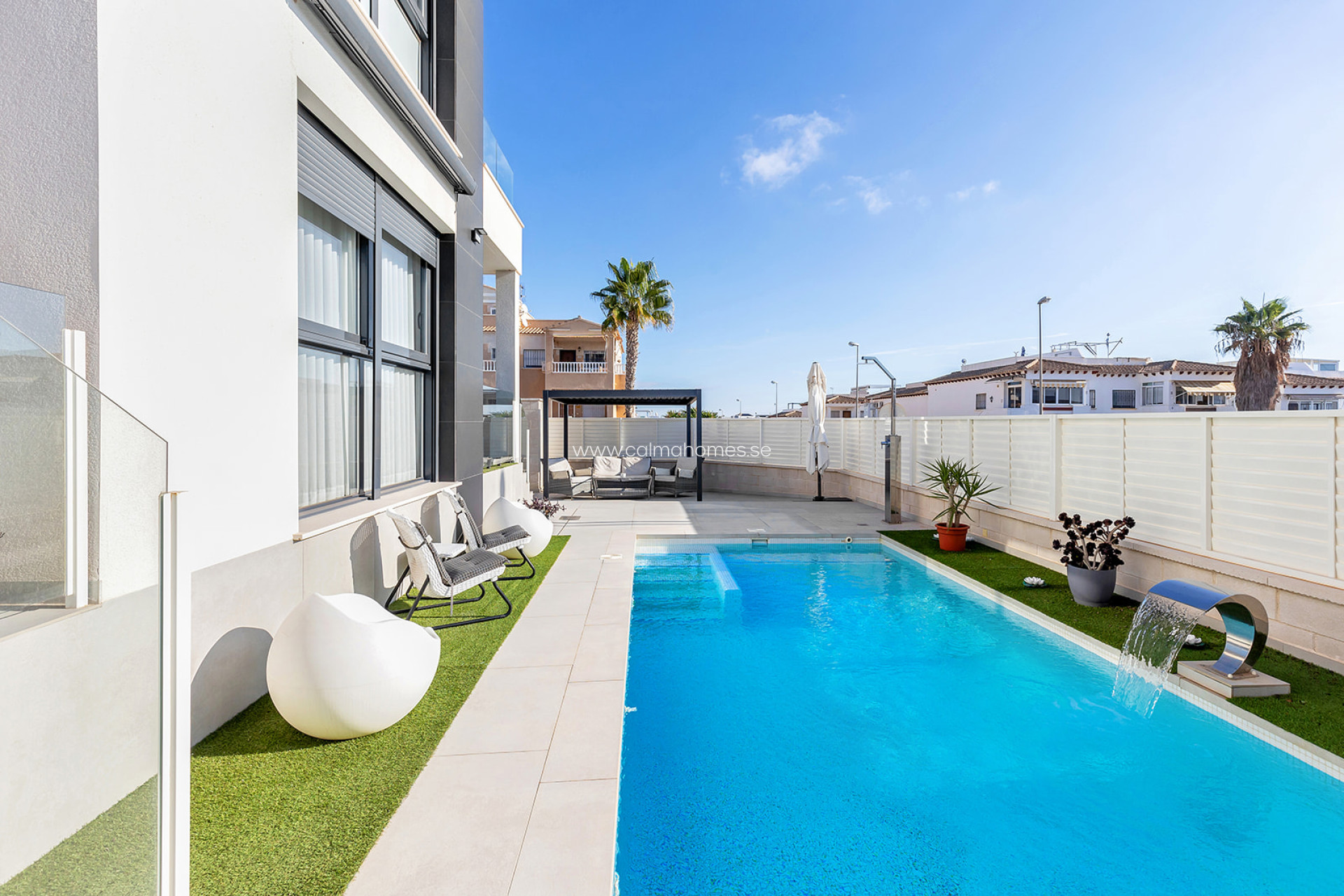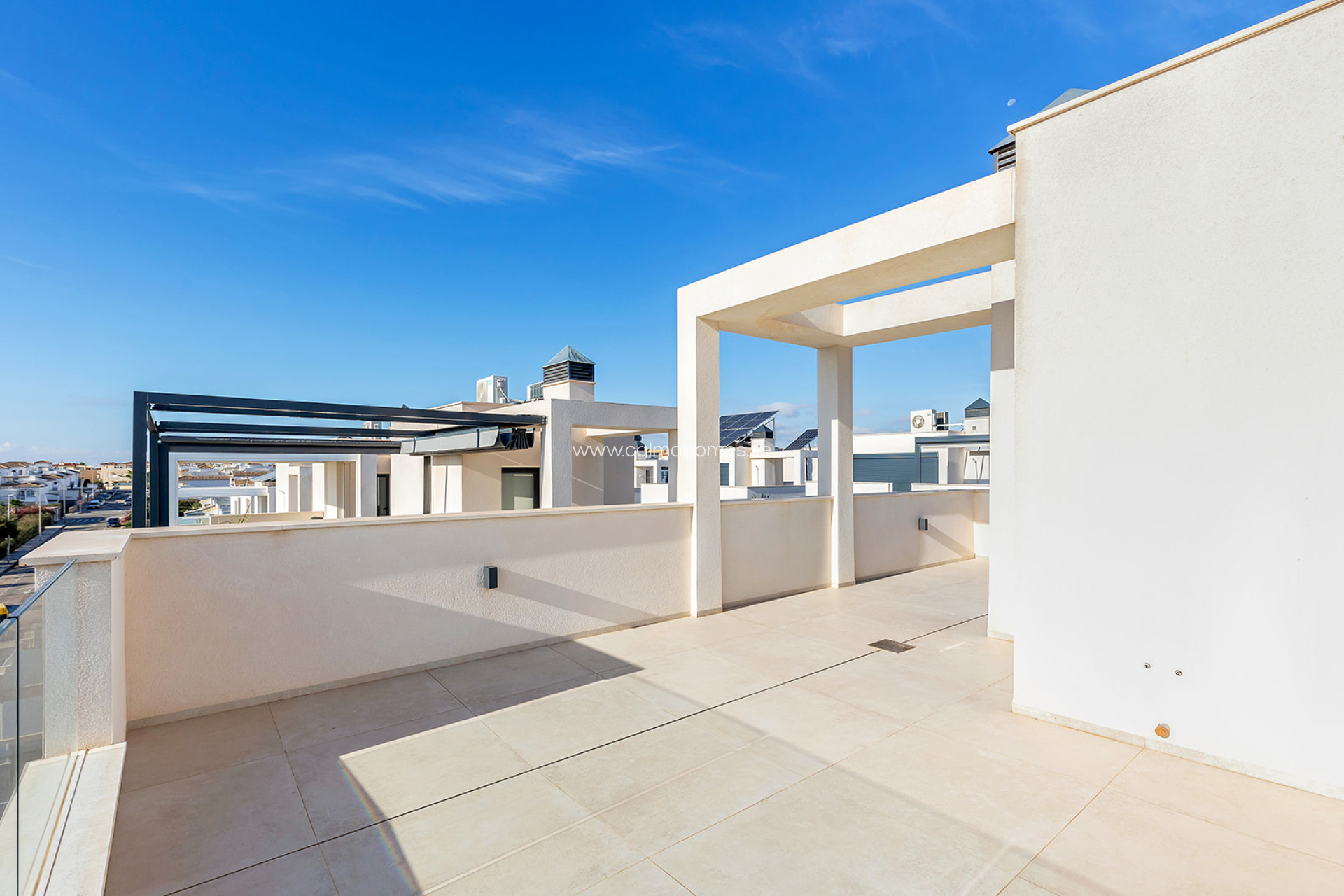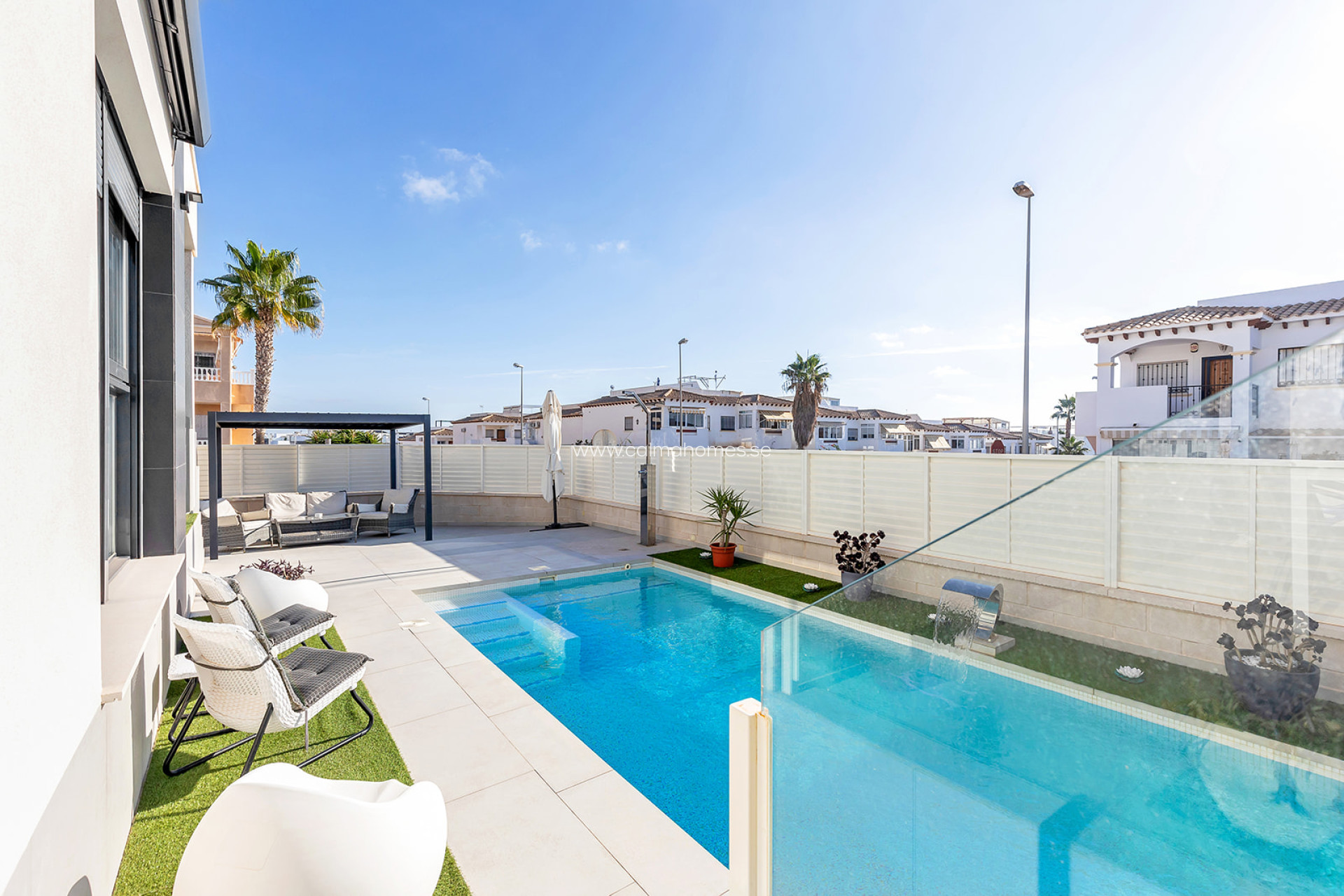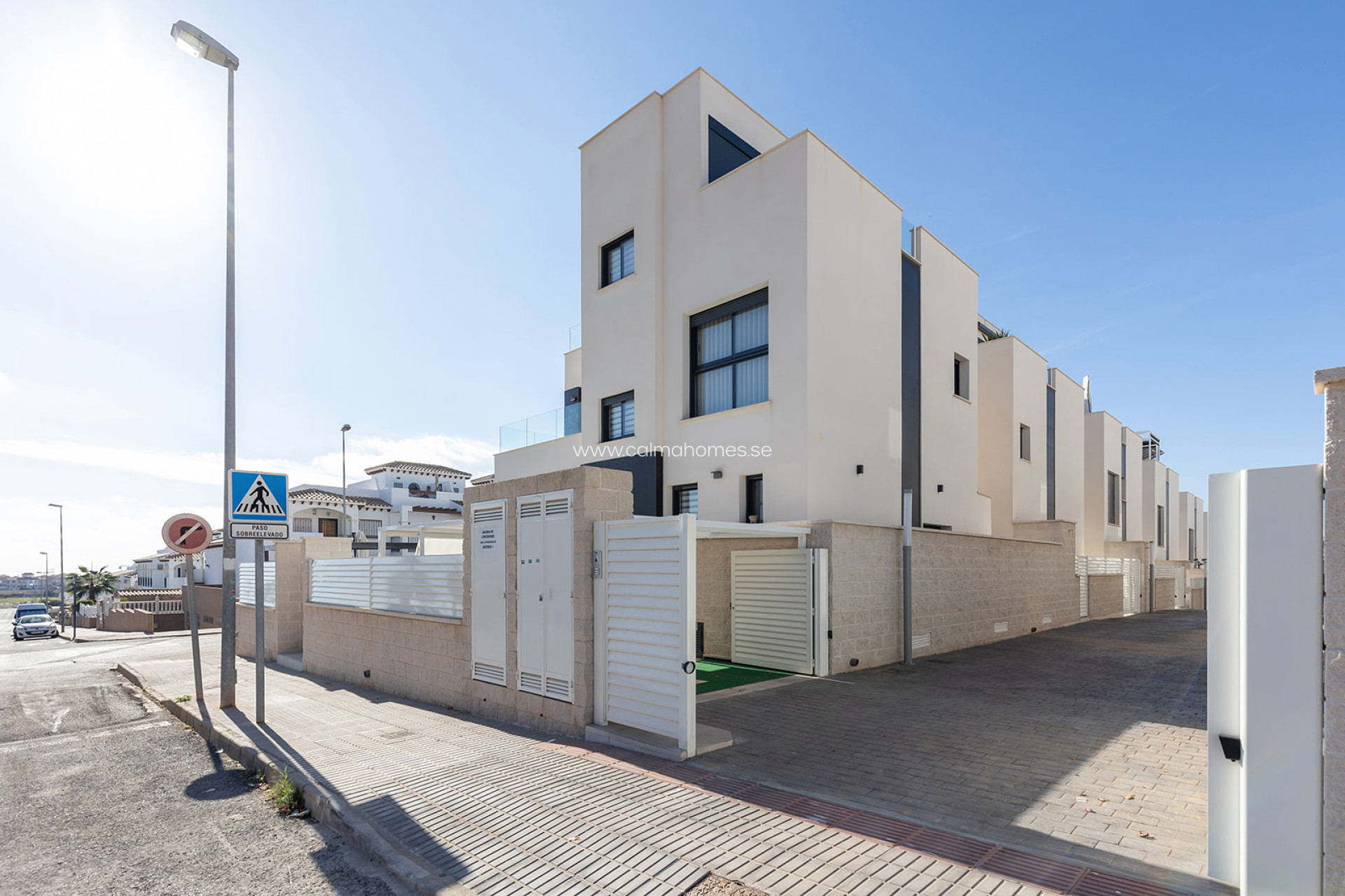 Moderna villa en Los Altos, Orihuela Costa. Moderna villa con piscina privada y parcela de 267m2. Esta casa se hizo con un proyecto personalizado y se puede ampliar a 3 y 4 dormitorios. La villa de recién construcción y ofrece muchos extras y materiales de alta calidad. La vivienda se divide en 3 plantas, en planta baja encontramos salón-comedor, cocina americana y un baño. En planta alta, encontraremos 2 dormitorios 2 baños, uno de los dormitorios tiene salida a una amplia terraza con vistas a la ciudad y otro tiene un baño en-suite. También cuenta con un amplio solárium de 68m2. La vivienda está a sólo unos minutos en coche del centro de Torrevieja. Está situado en una zona residencial donde se disfruta del clima mediterráneo y las playas de bandera azul de Orihuela Costa y Torrevieja como La Mata, Playa Flamenca, La Zenia, Cabo Roig, Cala Capitán y Campoamor. Se encuentra cerca de los centros comerciales Habaneras y La Zenia Boulevard, donde se pueden encontrar muchas tiendas y restaurantes. También puede disfrutar de una gran variedad de campos de golf en los alrededores, como Villamartín, Las Ramblas, Campoamor y Las Colinas, así como centros deportivos y puertos marítimos. A través de la N-332 o la autopista AP-7, se puede llegar fácilmente a cualquier punto de la Costa Blanca.
