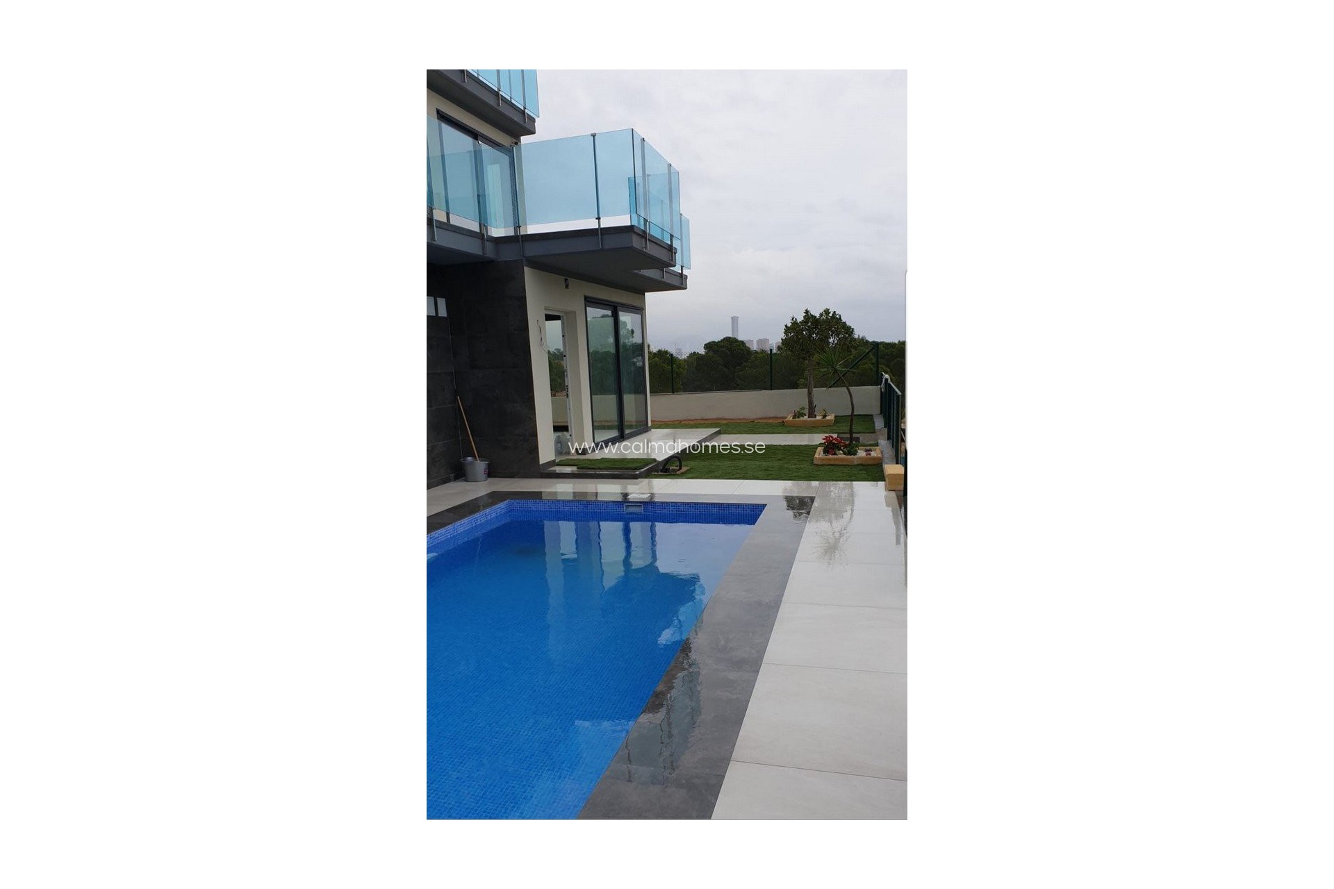 NEW BUILD VILLAS IN FINESTRAT New Build modern villas in Finestrat with 3 bedrooms, 3 bathrooms, open plan lounge and kitchen, open terrace, solarium and parking space for 2 cars. . The villa is delivered fully finished including kitchen furniture, parking area, swimming pools and gardening with fencing. This villas will be carried out with top quality materials and with an energy efficiency system through software with double flow ventilation. Residential located 5 min by car from all the services that Benidorm can offer and in an environment with an average annual temperature of 20ºC and 300 days of sunshine a year, 44 km away from Alicante airport, 3 km from the sea and 200 meters to the golf.