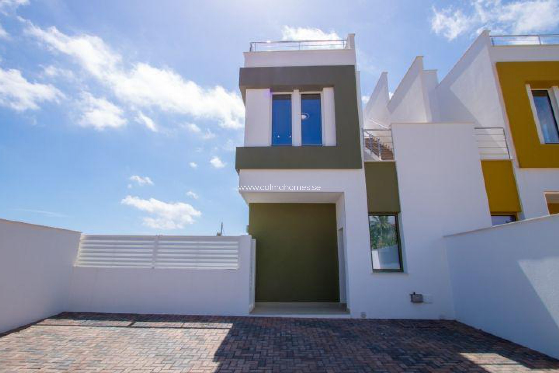 Modern semi-detached house with garden and private solarium in Denia Private urbanization of townhouses with an area of 100 m2 with private garden and parking. They have 2 floors, on the ground floor there is a large living room with open kitchen, a bathroom, exit to the terrace and parking for 2 cars. On the upper floor are the 3 bedrooms with 2 more bathrooms, one of them ensuite and another terrace that is accessed from the main room. There is also access to a private solarium with great unobstructed views. The residential has common green areas, playgrounds and a community pool. The houses are delivered equipped with an oven, induction ceramic hob, extraction hood, dishwasher and pre-installation of air conditioning. 1.5 km from the center of Denia and the beach, in a quiet residential environment where many residents live all year round.