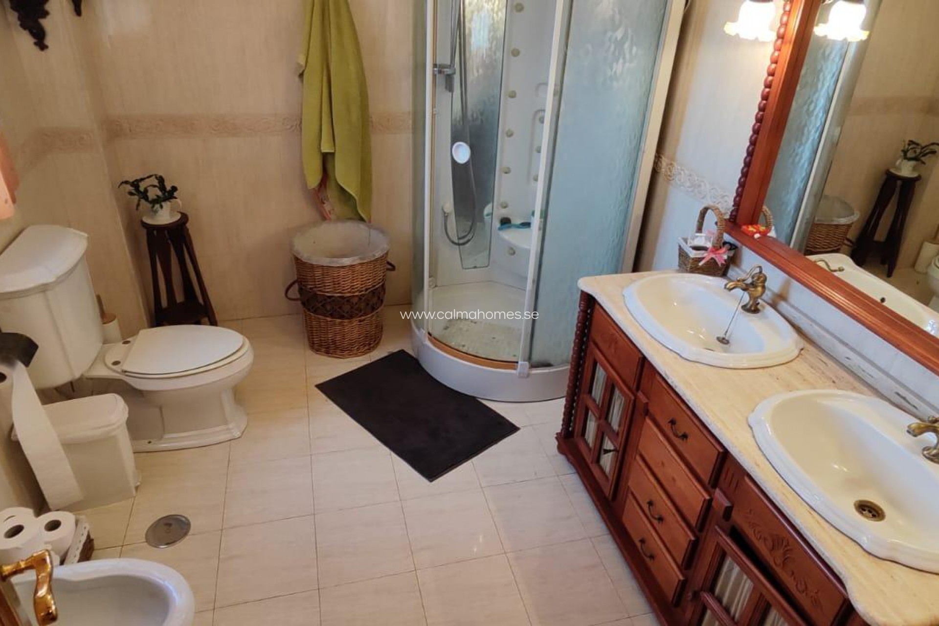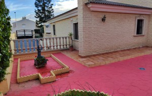 Detached villa in the area of Aguas Nuevas 2, in Torrevieja. It is located in a privileged area, very quiet and very close to all services, supermarkets, pharmacies, schools, private hospital, etc... The beach of La Mata is at 1 km. and the centre of Torrevieja at 2 km. approximately. The property was built in 2003, it is surrounded by terraces, gardens and a fantastic swimming pool of about 40 m2, all inside a fenced plot of 800m2. In the ground floor there is a spacious entrance hall with a corridor, two bedrooms, one of them with a complete bathroom and a dressing room, apart from another complete bathroom, a beautiful independent kitchen of about 30 m2 approximately, completely equipped, a machine room or store room to support the kitchen and a large living dining room of about 50 m2, with a beautiful fireplace. Upstairs there are two more bedrooms, a third complete bathroom and a nice terrace with views to the swimming pool. In the basement, which can be accessed from the inside of the house or by the vehicle access ramp, there is room for 4 good sized vehicles, a toilet, a wine cellar, a bar, another fireplace and a large dining room for more than 30 people. The house has been carefully built with the best materials of the period, both inside and outside. The whole house faces outside, including the bathrooms, all of them have windows, it is a very luminous house. On the back terrace, there is a covered area with a barbecue. It has security cameras and installation. The whole house has oil central heating and air conditioning hot/cold by conduit, as well as piped music.