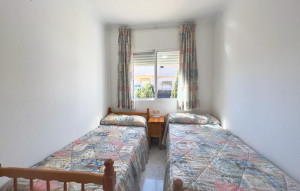 Top floor bungalow with no neighbours below located in the Torreblanca area of Torrevieja. With a constructed area of 53m2 and a large terrace of 30m2, this property is located just 1.4km (approximately a 3 minute drive) from the beautiful beaches of the town. The interior of the property has a bright double bedroom with a built-in wardrobe, as well as an additional single bedroom. There is also a complete bathroom with shower. The interior carpentry is finished in white lacquer and the floor is tiled in porcelain stoneware, while the exterior carpentry is aluminium, which provides greater durability to the architectural ensemble. Amenities include air conditioning, private storage room and even a balcony to enjoy the surroundings. The residential complex offers a communal swimming pool and well-kept gardens where you can relax or sunbathe.