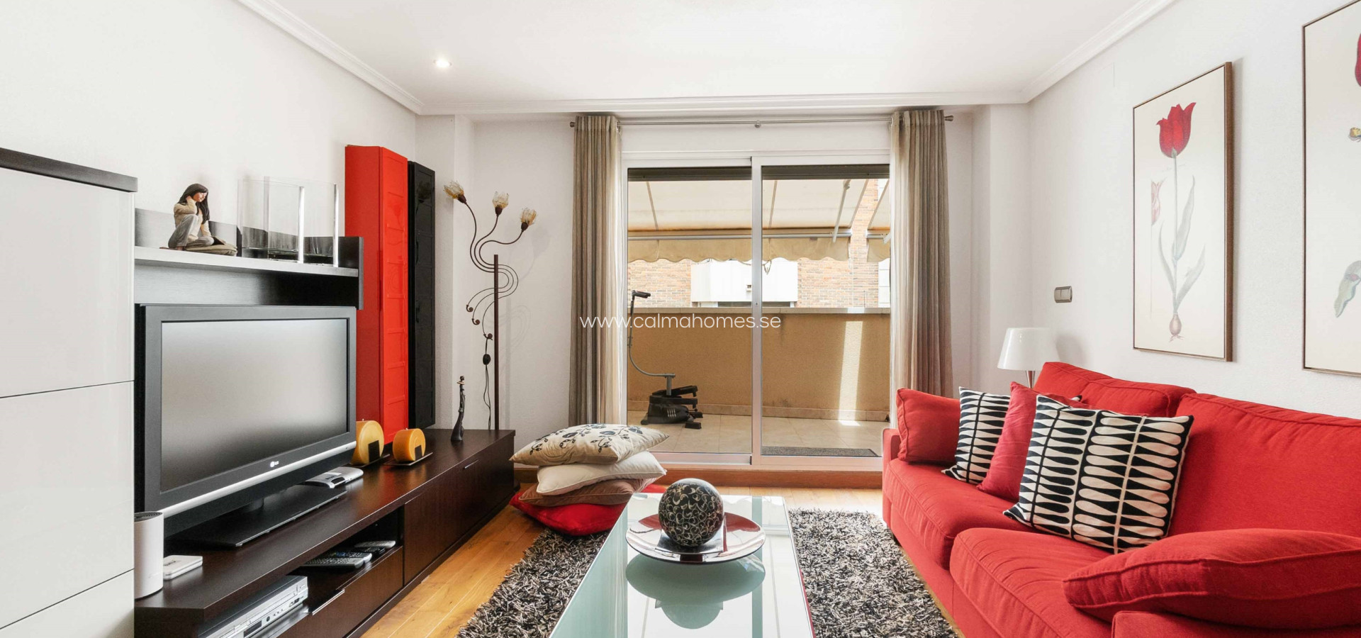 Penthouse in the center of Torrevieja. A step away from the port and the commercial area is this beautiful apartment. It has 109m2 distributed in a living room and fully equipped kitchen. It has three bedrooms, two of them have en-suite bathrooms and the main one, in addition, with dressing room and air conditioning. On the other hand, there is a single room and a bathroom. The house has underfloor heating, central air conditioning and audio system integrated into the ceiling. In addition, it has a large terrace to enjoy the good weather in the area, storage room and a garage. It is located in the center of the city of Torrevieja and close to the beaches of the area, La Mata and Orihuela Costa. You can go to all services and leisure and sports activities walking, close to supermarkets, restaurants ... Ideal to live all year round or as a second residence. It is located two minutes walk from the Paseo Marítimo and 5 minutes from Las Habaneras Shopping Center and 10 from La Zenia Boulevard.