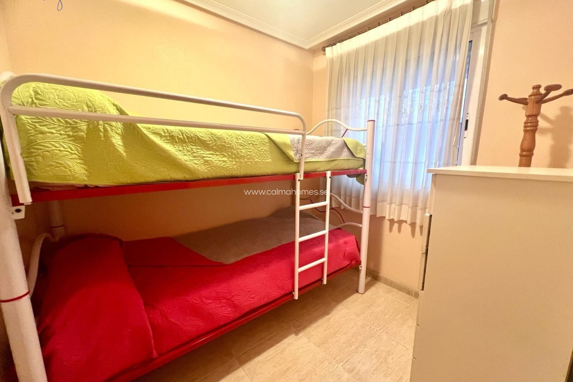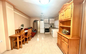 Ground floor apartment for sale located in the Playa del Cura area, Torrevieja. With an area of 60 m2, this property is only 80 metres away (1 minute walk) from the beach. The property has one double bedroom and two single bedrooms, a complete bathroom and is ready to move into. The kitchen is fully fitted and equipped and has pine interior carpentry, porcelain stoneware flooring and exterior windows with aluminium frames facing west. Additional amenities include fitted wardrobes, private patio, large terrace ideal for enjoying the Mediterranean climate all year round, additional storage room included and private parking within the complex. The proximity to public transport makes it extremely convenient as there are nearby bus stops and taxi ranks available on a regular basis.