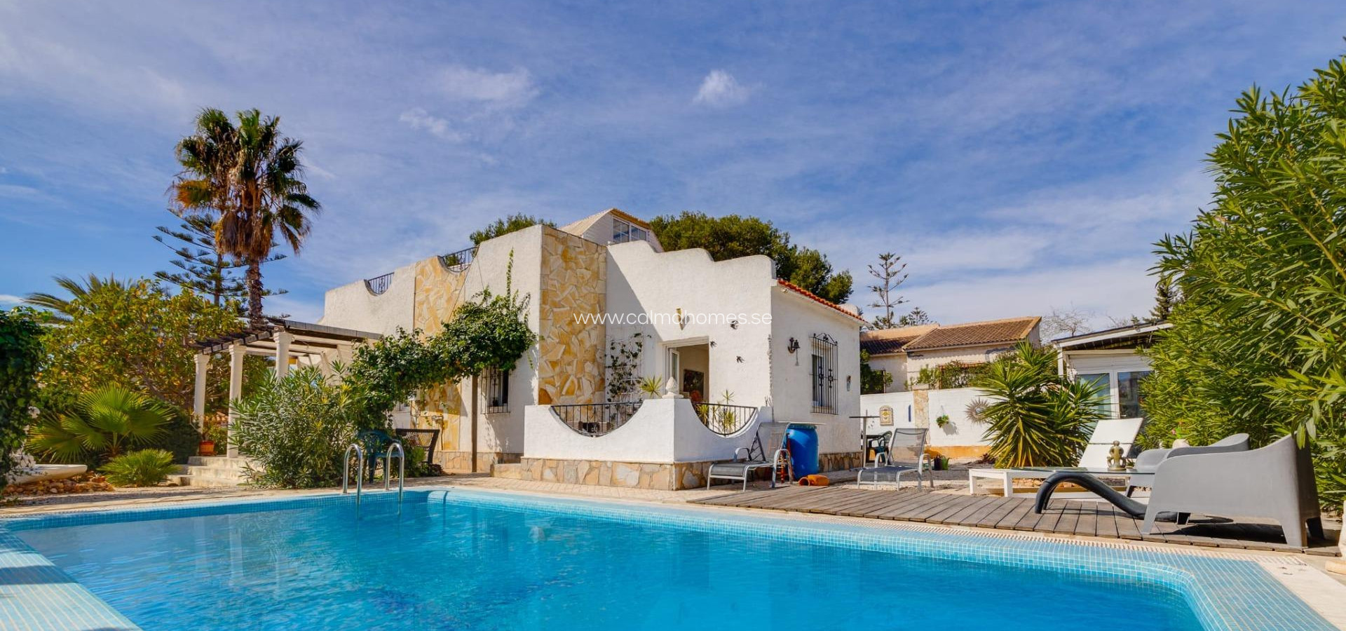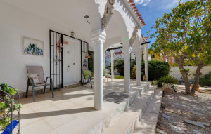 Location: La Zenia, 300 meters from the beach. Orientation: South-facing. Type of property: Independent villa on one floor. Additional features: Solarium of about 50 m2 with pergola and barbecue area. Plot size: 600 m2. House size: 82 m2. Bedrooms: 2. Bathroom: 1. Kitchen: American style. Living room with a fireplace, Private pool.