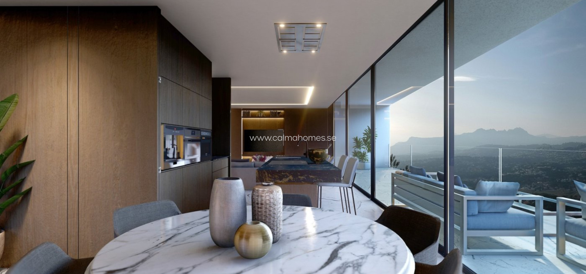 NEW BUILD LUXURY VILLA IN MORAIRA This stunning modern High-Tech Luxury Villa is situated in the well known and sought-after residential area of El Portet in Moraira and features, due to its enviable lo-cation, breathtaking panoramic views over the Mediterranean Sea, the Peñón de Ifach and the landscape. The beautiful old town of Moraira, the Harbor and its paradisiacal sandy beaches are located barely 5 minutes away. A haven in which one can contemplate nature in a landscape with the Mediterranean Sea as backdrop .. the entire territory is conceived as an additional material in the pro-ject. The respect to the settings and the surrounding nature, as well as maximising both contemplation and enjoyment of this natural environment, are the key factors that de-termine the starting points in the design of this dwelling. You will access to the house from the up road dead-end, walking trough a pleasant path, giving you the chance to discover the different features of this project. From the main entrance you get access to the ground floor directly to the hall, allocat-ing the kitchen, living-dining all in one area. From the hall you can access to the top and ground floor trough the stairs or the elevator. The living area and the kitchen have direct access to the pool and outdoor entertainment area with barbecue. The top level is dedicated to the sleeping area and consists of 2 master bedroom with walk- in closet, fully equipped bathroom with amazing views. In the ground floor there are 2 additional bedrooms both with en-suite bathrooms, laundry and closed garage for 2 cars. It also has a spa area prepared for a sauna. On the opposite side there is a huge cine-ma room and a wine cellar with bar and table for events. Licence ready to start building. Moraira is a small town with with good restaurants, bars and plenty of supermarkets around. There is a very pleasant beach right next to town that is great for families. The seafront offers tremendous views of Penon Ifach across the bay in Calpe. The coast road getting there is well worth doing with some spectacular views. Moraira situated about 1 hour 15 minutes North up the A7 from Alicante airport its fairly easy to get to. It's about the same distance or a little less South from Valencia airport.