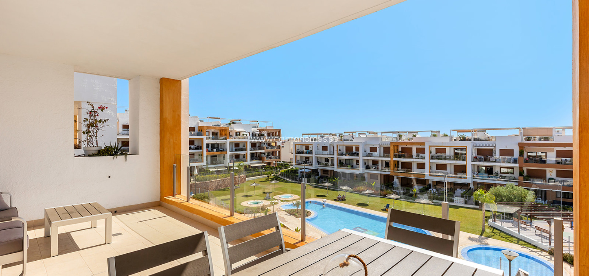 2nd floor apartment in Villamartin, Orihuela Costa. We present this beautiful apartment distributed in three bedrooms, one of them with en-suite bathroom. A spacious living room with kitchenette and direct access to the terrace of 22m2 overlooking the common areas of the residential. It is located in residential 'Gala' where you can enjoy a communal pool, jacuzzi and gardens. It has its own parking space. Villamartin is a prestigious area with all the services and amenities between golf and the sea. Nearby is La Zenia Boulevard, which is the largest shopping center in the province of Alicante. Also nearby is the Villamartin Golf Course, 5 minutes from the beach, the Real Club de Golf Campoamor and Las Ramblas Golf Course, surrounded by schools, shopping centers, restaurants, pharmacies, bus stops that favor the stay throughout the year. It connects easily with the national road N-332 and the Mediterranean highway AP-7.