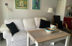 A few metres from the beach, terrace 28,50 m2, 2 bedrooms, 2 bathrooms, 1 open plan kitchen, 1 living/dining room.