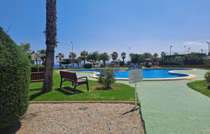 Discover this charming bungalow located in the beautiful urbanization of Dehesa de Campoamor. On arrival you will be welcomed by a pleasant terrace, perfect for relaxing and enjoying the outdoors. Upon entering through the main door, you will find a cozy living-dining room, ideal for entertainment. The fully equipped kitchen leads to a private outdoor patio, which provides additional space. The staircase leads to the first floor, where you will discover two comfortable bedrooms and a bathroom. The second floor houses a third bedroom and a solarium. The latter, out of sight of others, is perfect for relaxing and enjoying the sea. This bungalow is sold furnished, ready to receive you during your holidays or to live all year round. On site, you can cool off in the communal pool or head to the beach just a few steps away. Also, enjoy the beautiful surrounding coves, local market and nearby bars and restaurants. This property is an opportunity for those looking for a piece of paradise on the beach of Dehesa de Campoamor. Do not miss the opportunity to live in an idyllic environment, close to all services.