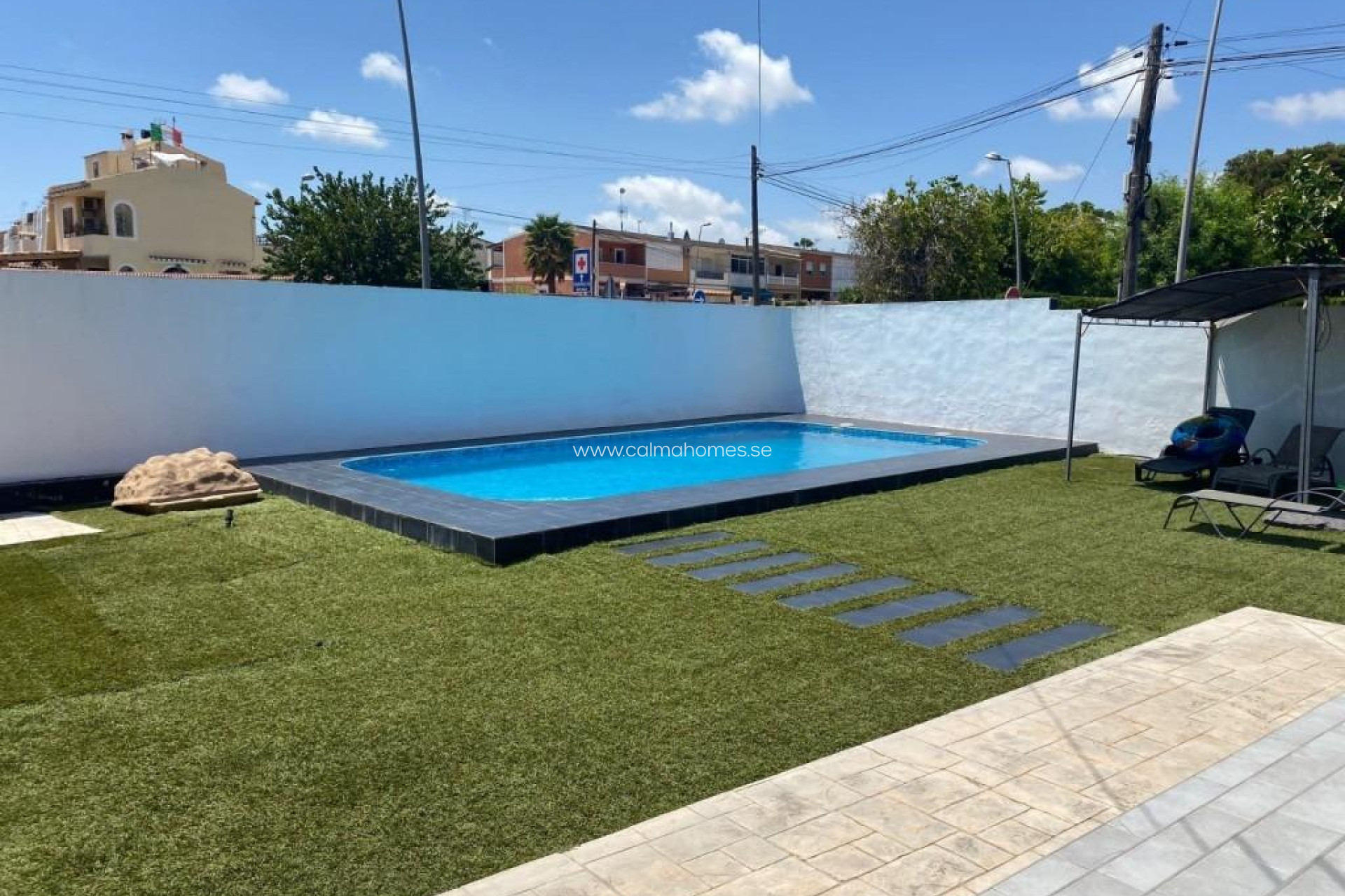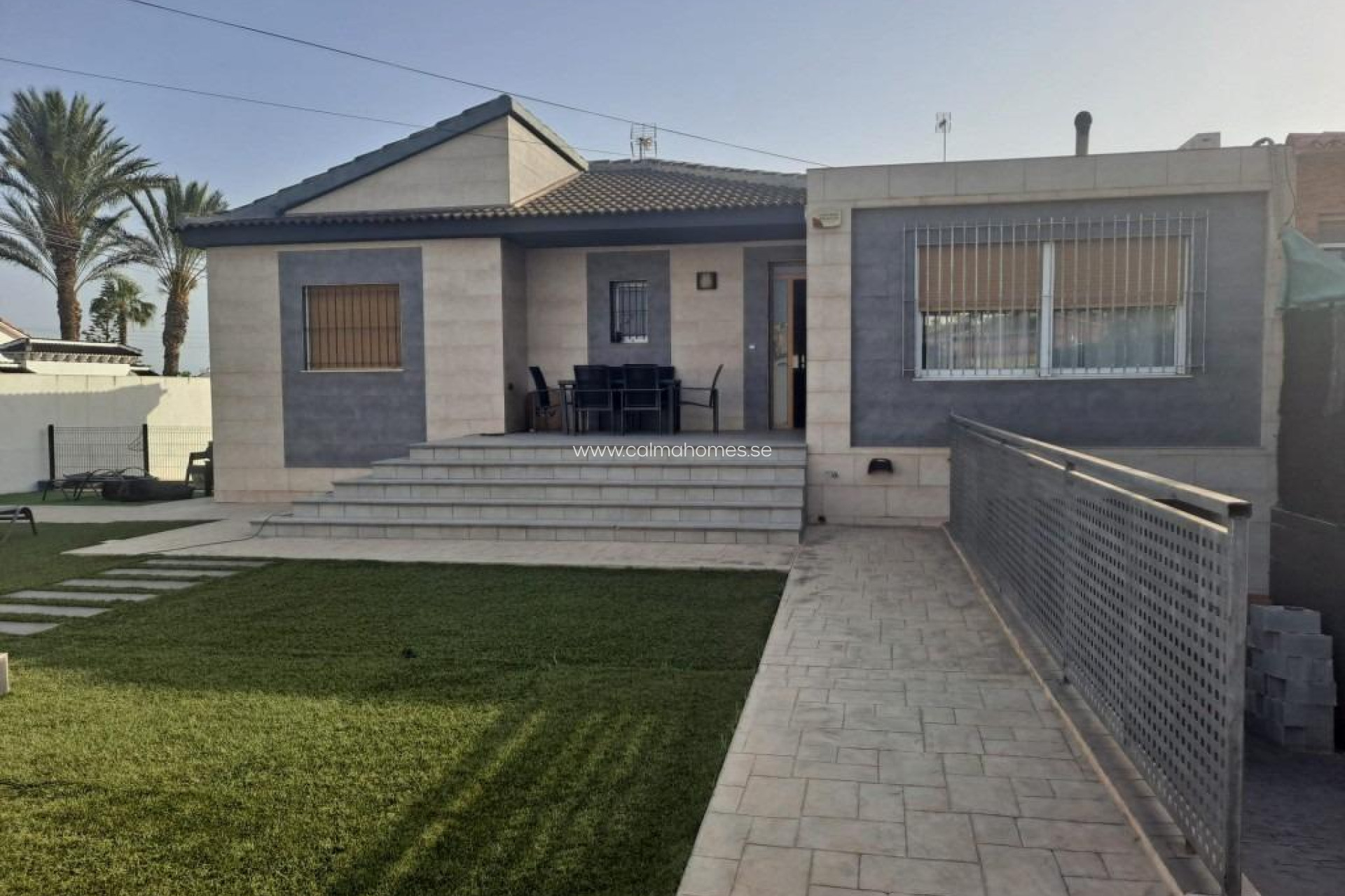 This splendid renovated villa offers a luxurious and comfortable lifestyle in an idyllic setting. Located in the area of Los Balcones, Torrevieja, Alicante, this property is close to the shopping center, supermarkets, public transport and only a few steps from the University Hospital of Torrevieja. Surrounded by playgrounds and schools, this villa is the perfect place to live all year round. The villa has a plot of 542m 2, with large garden areas, private pool, barbecue and a small laundry. The house has a built area of 132m 2, of which 22m2 belong to the basement, which has separate entrance. The living room is spacious and furnished, with air conditioning, fireplace and a large window with security grilles that communicates with the porch access to the house. Three large bedrooms, one with two beds, auxiliary wardrobe and air conditioning; a second bedroom with double bed and air conditioning; and the master bedroom with en suite bathroom, small dressing room, double bed and air conditioning. Two full bathrooms, one with bathtub, toilet and vanity unit, and a second en suite bathroom with shower, vanity unit, toilet and bidet. Fully equipped kitchen with appliances and access to the back garden. Basement equipped to accommodate several vehicles, plus two storage rooms. Ideal for cinema and games room where to enjoy time with friends and family. Two parking spaces and a private garage, offering comfort and security.