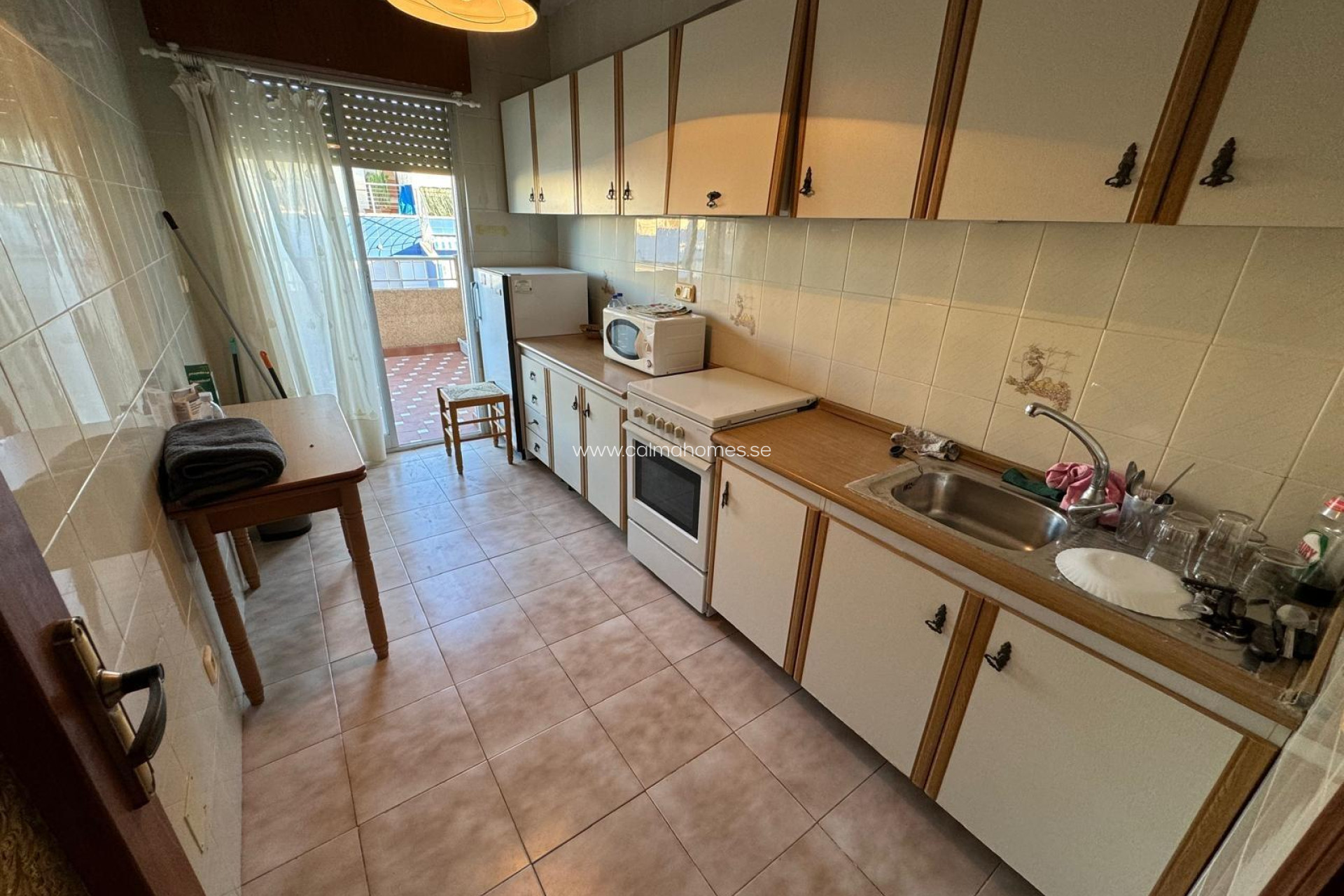 On the second line of Playa de los Locos, and with direct access to it, is this 94 m2 penthouse, facing south, consisting of a large living room with a beautiful terrace of approximately 25 m2, 3 bedrooms with built-in wardrobes, 1 large bathroom and a laundry room. The property needs some improvements. Due to its location and being surrounded by all kinds of communications and services, it is ideal for holidays or for living all year round.