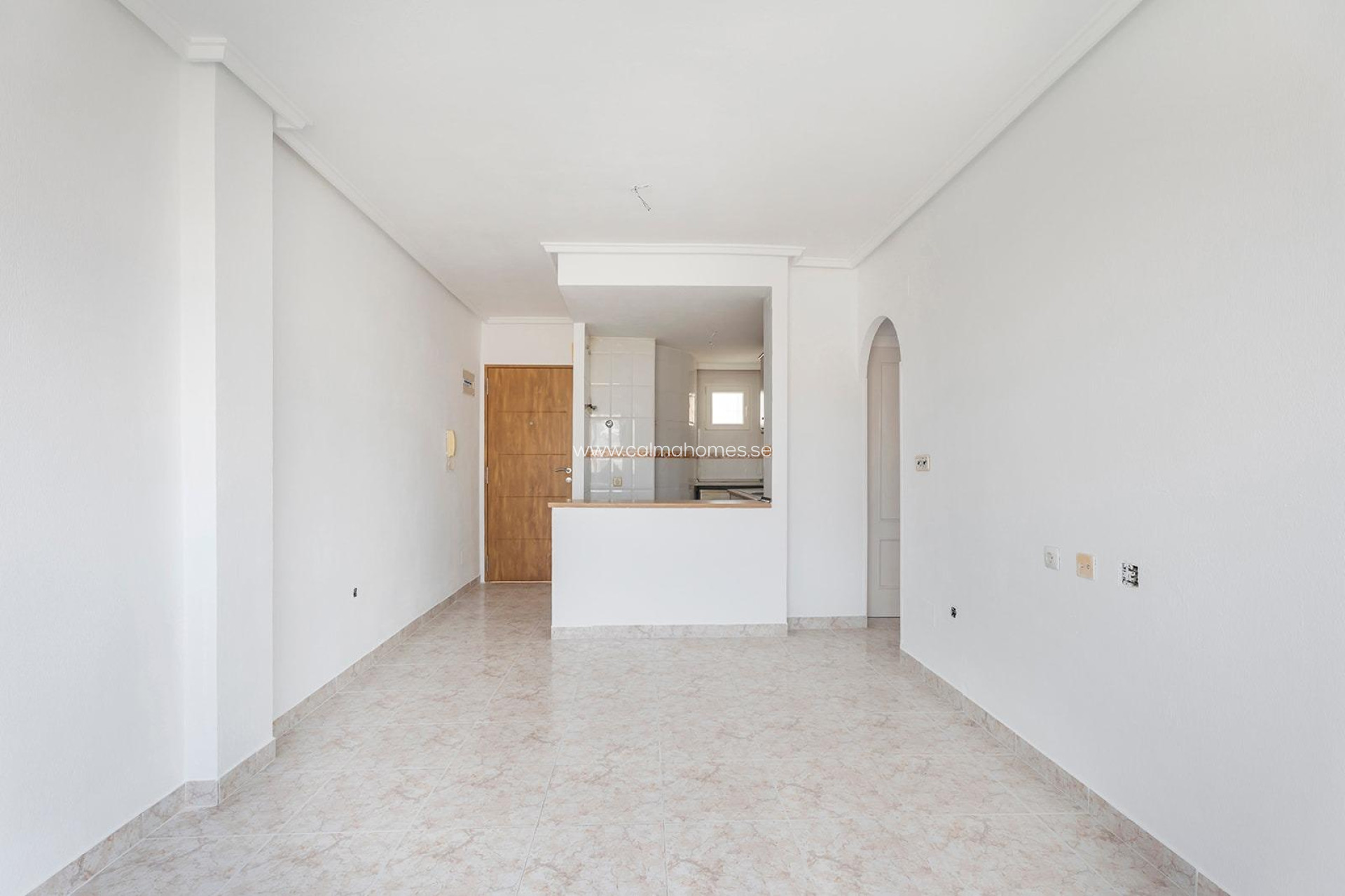 This is a great opportunity to purchase a property on the top floor of a four-storey building, with unobstructed views.~~It is an apartment with two bedrooms and one bathroom, an open-plan kitchen with a bar and a very bright living-dining room with access to a terrace of about 5 square metres.~~The building has a lift, a communal swimming pool and a surface parking area for residents.~~It is located in a quiet area of Torrevieja, next to the Maestro Salvador Ruso school.