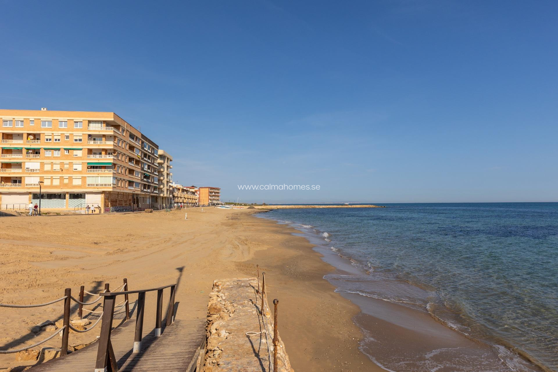 This magnificent apartment is in the final phase of its complete renovation, offering the opportunity to enjoy a modern, high-quality home. Located on the first line, it boasts stunning sea views and a prime location in the heart of La Mata Pueblo.~~The property features three spacious double bedrooms, one of which has an en-suite bathroom, along with two full bathrooms and a guest toilet. Its south-facing orientation floods the spaces with natural light, enhancing its contemporary design.~~Highlighted extras: terrace, private patio, pre-installed ducted air conditioning, elevator, and optional garage.~~Priced at €430,000, this is a unique opportunity to live by the Mediterranean, surrounded by services and amenities. Experience unmatched quality and location!