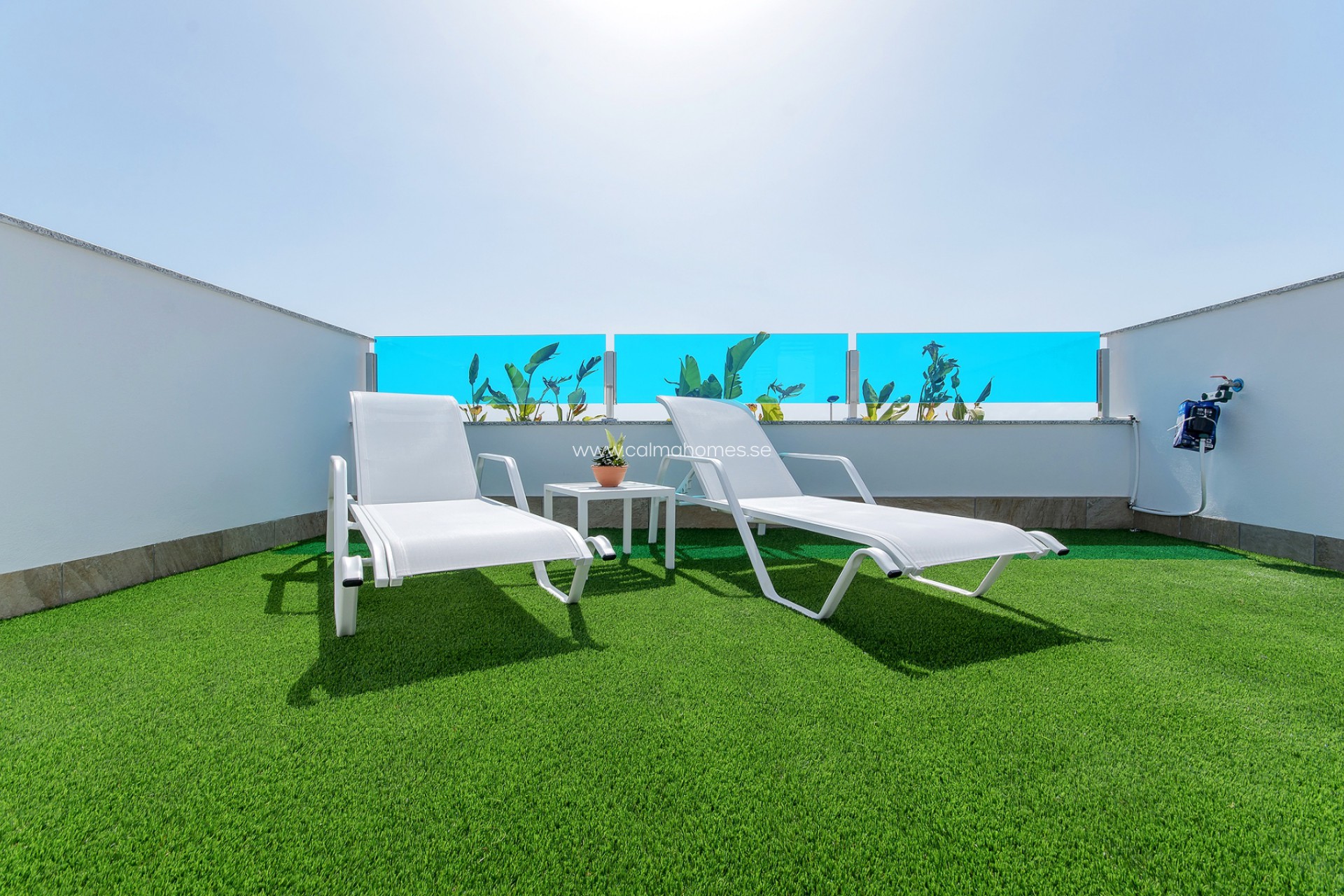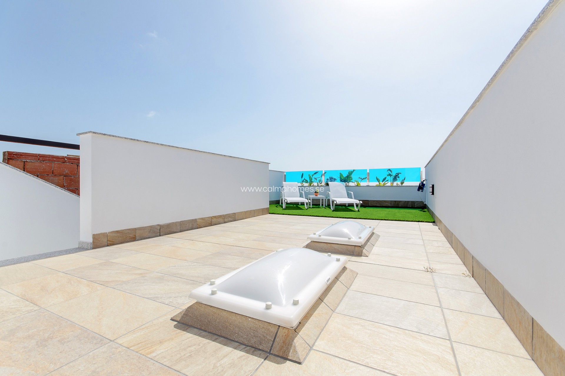 On top of all this, there are three different wonderful outdoor places. One terrace on ground floor, one balcony on the second floor with access from the master bedroom. And a solarium overlooking the wonderful pink salt lake.